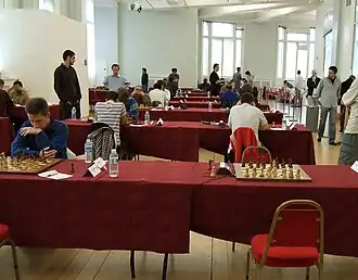 The first European Union Individual Open Championship formed part of the programme of events celebrating Cork City's status as European Capital of Culture for 2005. Played over ten rounds, the event took place 21 March – 3 April 2005 in the Ballroom Suite of the Gresham Metropole Hotel, MacCurtain Street, Cork, Ireland. There were one hundred and fifteen participants and Hungarian grandmaster Zoltan Gyimesi won the event on tie-break from Mateusz Bartel of Poland, who drew level on points in the final round. The highest placed woman player was IM Viktorija Čmilytė of Lithuania with 6½ points.[1]
