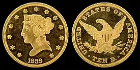 The eagle was a United States $10 gold coin issued by the United States Mint from 1792 to 1933.