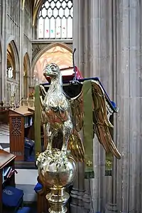 An eagle lectern is a lectern in the shape of an eagle on whose outstretched wings the Bible rests.[1] They are most common in Anglican churches and cathedrals, but their use predates the Reformation, and is also found in Catholic churches.