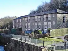 The original building, built in 1871, was burned out in 1886 and was rebuilt in 1887 as the present building, which is Grade II listed.[5] It is built of brick in 5 storeys with stone banding and a slate roof and a rectangular floor plan of 14 by 6 bays. It was mainly used for finishing and winding until 1903, after which it carried out twisting and winding.