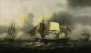 ![]() The Earl of Abergavenny East Indiaman, off Southsea, 1801, by Thomas Luny | |