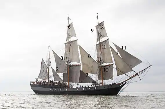 | Sail plan | 885 square m (9500 square ft) |