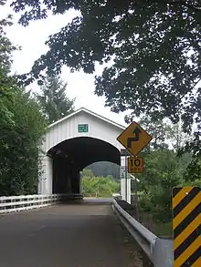 The Earnest Bridge, located near Marcola, Oregon, is listed on the National Register of Historic Places.[2] The name is spelled Ernest Bridge in some documents, including the NRHP listing, but spelled Earnest Bridge in the NRHP nomination and in signage on the bridge itself.[3]