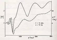 - The transmitter is a vertical electric Hertzian dipole radiating at 15 kHz. The virtual reflection height of the Earth-ionosphere waveguide is at 70 km, corresponding to day time conditions at mid-latitudes. The amplitude minimum near ρ = 500 is the last interference minimum between ground wave and first sky wave (ray theory). It is also the first interference minimum between first and second mode (mode theory)