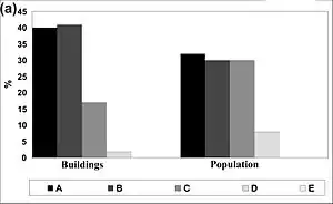 The built environment is poorly known for some countries. The quality of buildings differs by country and settlement size. For estimating damage to the built environment, one needs to calculate the damage expected for each type of building present in a given settlement. For each settlement one needs to know the distribution of buildings into classes with different resistance to strong shaking. A common scale for classifying building types is the European Macroseismic Scale (EMS98)[27]