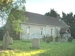 The Church of England parish church of Saint Peter was built in the 14th century. It consists of a continuous nave and chancel with no chancel arch between them. The chancel masonry is ashlar, noticeably better-dressed and more evenly coursed than that of the nave. The church building includes a 12th-century Norman doorway re-used from an earlier church on the same site.[1] The font is tub-shaped, suggesting that it too is Norman. The chancel windows are Perpendicular Gothic. The east window has ogee tracery and includes 14th century stained glass.[1] The piscina also is ogeed. Beside the east window on the east wall are the remains of a medieval wall painting. The woodwork of the pulpit and reading desk are Jacobean items carved in the 17th century. The pulpit bears the date 1633 but Sherwood and Pevsner suggest that it was assembled in the 19th century from Jacobean materials.[1] St. Peter's is a Grade II* listed building.[2]