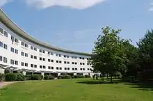 The campus is regularly evolving, and now stretches across the Norwich Research Park with the Edith Cavell Building and the Bob Champion Research and Education Building considered part of its campus over by the Norfolk and Norwich University Hospital.[53] Newest buildings on the campus include two new accommodation blocks, and the Enterprise Centre, said to be Britain's greenest building.[54]