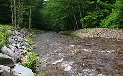 The creek's watershed is acidic. One contributing factor to this may be the presence of acidic bogs. It is a freestone stream.[2]