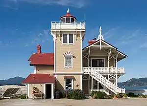Built in 1874 and automated in 1969, the lighthouse was designed in the American Stick style by Paul J. Pelz, who also designed East Brother Island's sister stations,[4] Point Fermin Light in San Pedro CA, Mare Island Light, in Carquinez Strait, California (demolished in the 1930s), Point Hueneme Light in California (replaced in 1940), Hereford Inlet Light in North Wildwood, New Jersey, and Point Adams Light in Washington State (burned down by the Lighthouse Service in 1912), all in essentially the same style. The former keeper's house began operating as a bed and breakfast in 1980.