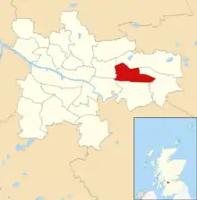 Located in the east of Glasgow, the core of the ward since 2007 includes Carntyne, Cranhill and Riddrie, with the northern boundary being the M8 motorway). The 2017 changes were substantial: the Dennistoun, Milnbank and Haghill neighbourhoods in the west of the original territory were removed and assigned to a new Dennistoun ward, whereas the neighbourhoods of Barlanark, Budhill, Greenfield, Lightburn and Springboig were added to East Centre from the Baillieston ward. The southern boundary is the North Clyde Line railway.