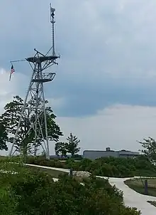 Fort Allen Park, which covers 9 acres (3.6 ha) and abuts the Eastern Promenade to the south, was built in the 1890s, designed by the city's Chief Engineer William Goodwin and backed by Mayor James P. Baxter, according to a plaque in the park. Fort Allen was probably originally built in 1775, may have served as part of Fort Sumner, and was rebuilt by the city and used to guard Portland during the War of 1812 due to its high vantage point overlooking Casco Bay.[3][4][5] The park is home to a 6-inch gun from the USS Maine (the ship whose explosion in Havana, Cuba started the Spanish–American War), the foremast and bridge structure of the World War II cruiser USS Portland (CA-33), two Civil War-era 4.5-inch siege rifles, an American Civil War memorial bench erected in 1929,[6] and an historic bandstand which was built in the 1890s. In 2012, a local non-profit group, Friends of the Eastern Promenade, sought to restore Fort Allen Park to its original look.[7] As of 2016 this has resulted in additional interpretive plaques throughout the park, along with other improvements.