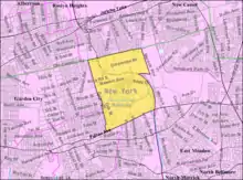 The CDP was mostly a commercial and industrial area and included Nassau Community College, along with a portion of Hofstra University's north campus.