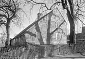 The Mulford Farmhouse, on James Lane, is the best-preserved 17th-century English colonial house in East Hampton. The barn dates to 1721, and the complex is operated as a living museum. It is listed on the National Register of Historic Places.[10] The house was built in 1680 for Josiah Hobart, a prominent early settler, named in the first formal deed of conveyance of East Hampton. This was known as the East-Hampton Pattent[11] or Dongan Patent. The 1686 instrument granting the Town of East Hampton to its new proprietors was signed by Thomas Dongan, then Governor of New York.[12] The patent named Capt. Hobart one of "Trustees of the freeholders and commonalty of the town of East-Hampton". Sons of Rev. Peter Hobart, founding minister of Old Ship Church in Hingham, Massachusetts, Josiah Hobart and his brother Joshua both migrated to Long Island with their families. Josiah Hobart settled in East Hampton, where he served as High Sheriff of Suffolk County. His brother Joshua, a minister, went to Southold, where he served the town for 45 years.