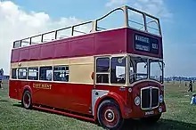East Kent was taken over by the National Bus Company on 1 January 1969, during this time the company's first rear engined double deckers arrived. These were 20 Daimler Fleetlines with Park Royal bodywork for Thanet garage. These were also the company's first OMO (one man operated) double deckers. Later on some AEC Regents were also converted to OMO to reduce the cost of having 2 crew on each bus but these tended to be used only at peak hours. In 1971 the last buses were delivered in the traditional maroon and cream livery, these were 12 AEC Swifts with Alexander bodywork. Leyland Nationals started to enter the fleet in the 1970s bringing with them the National Bus Company standard livery of Poppy Red and white. In the mid-1970s the Bristol VRT entered the fleet, the first batch having 14'6" ECW bodywork. Later batches had rare Willowbrook bodies before the final batch reverted to the standard 13'8" ECW body, by that time the NBC's standard vehicle. These cleared the last of the AEC Regents from normal passenger service in the early 1980s although some had a swan song on the park and ride for the Open Golf and Sandwich, whilst others were used on contracts and for driver training.
