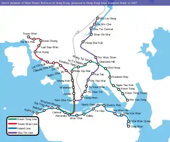 In September 1967 the Freeman, Fox, Wilbur Smith & Associates of Britain published a proposal to construct a mass transit system in Hong Kong, in which East Kowloon line was called Sha Tin line, connecting Wo Liu Hang in Fo Tan and Tsim Sha Tsui.