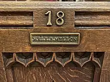 Following the deaths of Richard Beatty and Jennie King Mellon in 1942, the Church Session voted to construct to them a memorial which became Trinity Chapel. The entrance to the chapel is half-way down the east aisle and marked, above the doorway, with a carved shield of the Trinity. The doors are Siamese teak. The interior carvings are inspired by Peter Paul Rubens and the windows by Wilbur H. Burnham. The chapel, designed as well by Cram, was erected at a cost of $120,000 and dedicated January 15, 1944.[3]