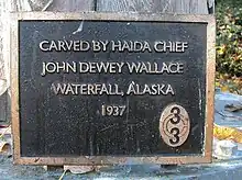 The 1971 Montlake Cut Waterside Trail runs through the park past the 40-foot totem pole shown at right on its way to West Montlake Park. A plaque at the bottom of the totem pole states that it was carved in 1937 by John Dewey Wallace, a Haida chief, in Waterfall, Alaska. The dedication ceremony for the donated totem pole took place in May 1983.