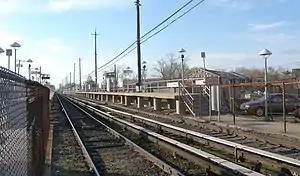 ![]() Platforms of East Rockaway Station looking northwest towards Valley Stream, and New York City. | |||||||||||