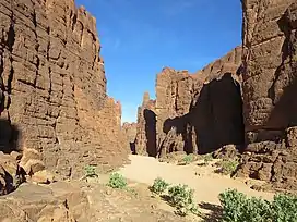 Plant life includes many species typical of the sahel belt including Ammania gracilis, the grass Panicum laetum, the forb Chrozophora brocchiana and the herbs Farsetia stenoptera, Indigofera senegalensis and Tephrosia gracilipes. One classic element of the natural flora was Laperrine's Olive (Olea europaea laperrinei).