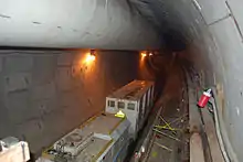 The East Side tunnel was the largest sewer construction project ever undertaken by the City of Portland. A contractor, Kiewit-Bilfinger Berger (KBB), used a tunnel boring machine that was 300 feet (91 m) long and had a cutting head that was 25 feet (7.6 m) in diameter. In addition to the tunnel and the pipe, the project involved building seven access shafts, connecting pipelines, and the Portsmouth Forcemain, which carries sewage from the Swan Island Pump Station to the Columbia Boulevard Wastewater Treatment Plant.[4]