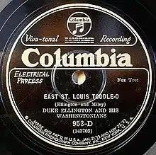 "East St Louis Toodle-Oo" (also "Toodle-O") is a composition written by Duke Ellington and Bubber Miley and recorded several times by Ellington for various labels from 1926–1930 under various titles.[1] This song was the first charting single for Duke Ellington in 1927 and was one of the main examples of his early "jungle music".[2] This composition (which entered the public domain on January 1, 2023[3]) was covered by Steely Dan on their 1974 album Pretzel Logic.