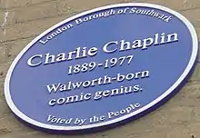 East Street was likely to have been the birthplace of Charlie Chaplin, although no birth certificate exists. It could therefore also have been the inspiration for his similarly named 1917 seminal short film Easy Street, a suggestion made as early as 1928 in the film 'The Life Story of Charlie Chaplin' by Harry B. Parkinson[5] and reasserted in David Robinson's introduction to the most recent edition of My Autobiography, while the famous trousers and boots of Chaplin's trademark tramp costume may have been inspired by the every-day clothes Chaplin saw worn in what he called East Lane market.