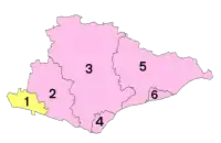 The area of East Sussex County Council's jurisdiction is divided into five local government districts. Three are large rural districts (from west to east): Lewes, Wealden, and Rother. Eastbourne and Hastings are mainly urban areas. The rural districts are further subdivided into civil parishes.[4]