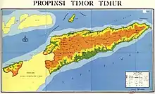 East Timor (Indonesian: Timor Timur) was a de facto province of Indonesia that existed between 1976 and 1999 during the Indonesian occupation of East Timor. Its territory corresponded to the previous Portuguese Timor and to the present-day independent country of Timor-Leste.