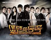 East of Eden (Korean: 에덴의 동쪽; RR: Eden-ui Dong-jjok) is a 2008 South Korean television series, starring Song Seung-heon,[1] Yeon Jung-hoon, Lee Da-hae, Han Ji-hye,[2] Park Hae-jin and Lee Yeon-hee. It was produced by Chorokbaem Media as a 47th Anniversary Special Project Drama for MBC, on which it aired from August 25, 2008 to March 10, 2009 on Mondays and Tuesdays at 21:55 for 56 episodes. The ₩25 billion drama tells the story of the brothers Dong-chul (Song) and Dong-wook (Yeon). Their fates diverge after the murder of their coal miner father, with one joining the mob and the other becoming a successful lawyer.[3][4][5]