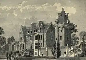 The house was designed by David Bryce and built by a Mr Harding in the Scottish Baronial style for David Carnegie.[1] Completed in 1857, the house was sold to Frank Carew in 1887 and then sold on to the Royal Air Force for use as an officers' mess for RAF Coastal Command in 1938.[2] It burnt down in 1969.[2]