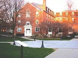 Memorial Hall (1948) is the only building on campus, other than the pre-existing Canterbury Hall (1901), not to be named for an individual. Rather, it was built as a memorial to those who had served in the Second World War. Over two hundred alumni had served, and six students had lost their lives in the war.[70]