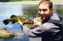 Several genetic studies have found that eastern freshwater cod, in the southernmost of these four rivers, and Mary River cod, in the northernmost of these four rivers, are more closely related to each other than to Murray cod.[5][6][7] This suggests that Murray cod only managed to cross into east coast river systems once. It is not clear which of the four river systems was the original entry point, but geomorphological evidence suggests the headwaters of the Clarence River.[5] The mechanism by which Murray cod crossed the Great Dividing Range are considered to be either river capture, where the headwaters of an easterly-flowing coastal river cuts back (in the erosional sense) and intercepts and "captures" the headwaters (and fish fauna) of a previously westerly flowing stream, or a "wet divide", where extreme flooding or a very wet climatic phase created swamps in a topographic low point that effectively connected the headwaters of western flowing and eastern flowing streams.[8][9]