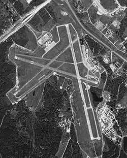 Easterwood Airport (IATA: CLL, ICAO: KCLL, FAA LID: CLL, Easterwood Field) is a regional airport in College Station, Texas, with Texas A&M University, Bryan-College Station, and Brazos County, Texas as its communities. Reached from Farm-To-Market Road 60 West (Raymond Stotzer Parkway), it is 3 miles (4.8 km) southwest of the center of College Station,[2] and 0.25 miles (0.40 km) from Texas A&M University. There is no public transportation from Easterwood Airport to the surrounding cities; however, in the fall of 2019, a new university bus route was established to connect Easterwood Airport with the Engineering Quad and the Texas A&M Hotel and Conference Center.[3] The airport bus route is available only to those with a University ID or Brazos Transit District ID. Despite owning and managing the airport, there are no aviation courses at the university.