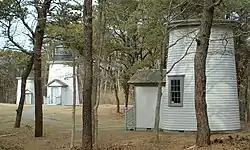 Today, Eastham is known as the "Gateway” to the Cape Cod National Seashore,[2] which was founded in 1961 by President John F. Kennedy to protect Cape Cod's coast from erosion and overpopulation. The town is the site of many beaches, both on the Atlantic and on Cape Cod Bay, as well as the Nauset Light, which was moved to the town in 1923 from its old location in Chatham, and the Three Sisters Lighthouses, which have since been moved away from their now-eroded perches on the coast to a field just west of Nauset Light.[3]