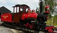 A dual gauge 10+1⁄4 in (260 mm) / 7+1⁄4 in (184 mm) light railway was established in the park in 1992, originally as a temporary layout.[3] A more permanent track was laid down in 1993, as the railway company was granted a three-year lease.[3] Five years later, a longer lease was negotiated and construction began on the two stations, Eastleigh Parkway and Monks Brook.[3] They were opened in 1999, although further work on the layout itself was carried out in 2000.[3] A tunnel was added in 2003, and Eastleigh Parkway station was extended in 2005 with the addition of a café and shop.[3]