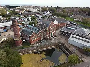 Eastney Beam Engine House is a Grade II -listed[1] Victorian engine house in Portsmouth, Hampshire, England. Dating from 1887, it contains two 150 hp James Watt & Co. beam engines.[2] The pumps were built as part of a plan to improve Portsmouth's sewage system.[3] The other element of the plan was large holding tanks which held the sewage until the pumps could empty them into the ebb tide. The pumps have since been superseded by advancing technology but have been restored (in 1980).[1] The restoration was funded by grants totalling £10,066 from Portsmouth city council, £4000 from Hampshire county council and £2000 from the Department of the Environment.[4] The Engine House is now open to the public[3] as a museum, owned by Portsmouth City Council (Museums Service) but operated by volunteers; consequently is only open on the last weekend in every month.