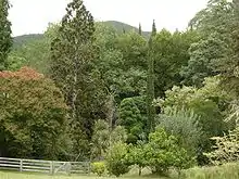 In 1918, back at Eastwoodhill, Douglas Cook started planting thousands of Pinus radiata for wood production and for fire-wood. He also planted Eucalyptus viminalis and E. macarthurii. He also started creating parkland with, amongst others, Platanus orientalis, different kinds of Ulmus, Acer pseudoplatanus and A. platanoides. In this year the lombardy poplars were also planted alongside 'Poplar Avenue' up the later Main Entrance Drive. In 1919 he ordered 1,996 trees and shrubs and in 1920 a total of 3,387, of which some two and a half thousand trees and shrubs were intended for the garden.[6] The plantings included 'Cabbage Tree Avenue' (restored in 2006).