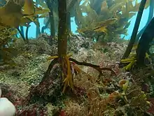 Typically the species can be found on algae at low tide,[2] and underneath intertidal rocks,[5] and often lives on kelp species such as Ecklonia radiata.[9]