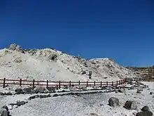 Ebino Plateau (えびの高原 ebinokōgen, lit. “Plateau of Shrimp”) is a basin within the Mount Kirishima mountain ranges, situated in southern Kyushu, Japan. It is surrounded by the Mount Shiratori (白鳥山 shiratoriayama), Mount Karakuni (韓国岳 karakunidake), Mount Ebino (蝦野岳 ebinodake) and Mount Koshiki (甑岳 koshikidake) mountain peaks.