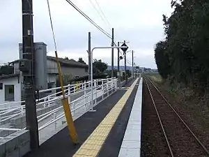 The station consists of a side platform serving a single track at grade. There is no station building but a simple shed has been set up at the station entrance to serve as a waiting room. A ramp leads up to the platform from there. A bike shed is provided nearby.[2][4]