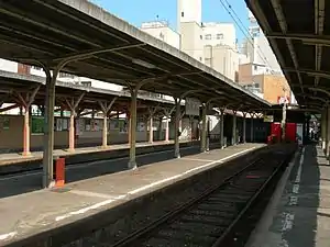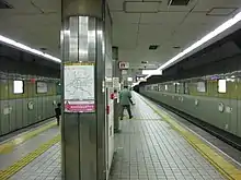 ![]() Railway platform of Ebisuchō Station (HN51), Hankai Line | |||||||||||