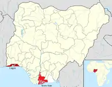 Cases of the Ebola virus disease in Nigeria were reported in 2014 as a small part of the epidemic of Ebola virus disease (commonly known as "Ebola") which originated in Guinea that represented the first outbreak of the disease in a West African country. Previous outbreaks had been confined to countries in Central Africa.[1][2]