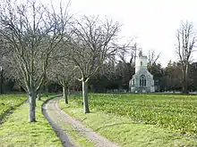 The station takes its name from being outside of the now abandoned original village of Eccles [1] although the church Eccles St. Mary still stands and is one of 124 original round-tower churches in Norfolk. A new settlement, also called Eccles, has developed around the station. The station is situated in the civil parish of Quidenham, about 2 miles (3 km) north of that village, and 1 mile (1.5 km) north-east of Snetterton Motor Racing Circuit.[2]