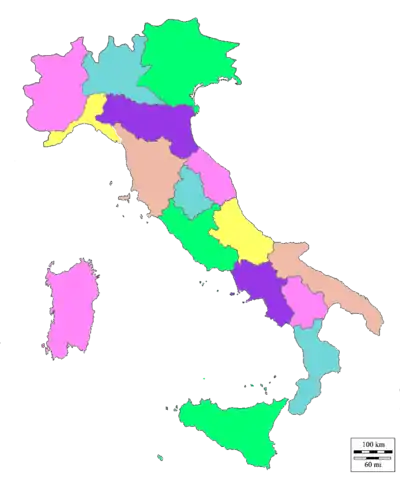 The Catholic Church in Italy is divided into 16 ecclesiastical regions. The regions mostly correspond to the 20 civil administrative regions of Italy.