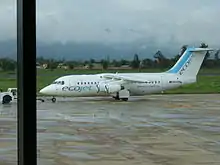 Línea Aérea EcoJet S.A. (stylized as ecojet) is a Bolivian domestic airline headquartered on the grounds of Jorge Wilstermann International Airport in the city of Cochabamba.[1] It started scheduled passenger operations on November 24, 2013, with two 93-seat Avro RJ85 aircraft.[2][3] The airline links its home city of Cochabamba, strategically located in the center of the country, with 9 major domestic destinations, reaching all the main centers of population. Along with Amaszonas, ecojet is a private airline that competes with state-owned airline Boliviana de Aviación in the Bolivian domestic market.
