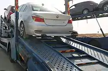 In 2012, 250 trucks a day passed through the Kerem Shalom border crossing, transporting goods from Israel to the Gaza Strip.[13] Since 2010, NIS 75 million have been invested in upgrading and expanding the crossing, which is capable of handling 450 trucks a day.[13] The Palestinian side of the crossing is operated by two families who were granted a franchise by the Palestinian Authority and authorized by Hamas. The Ministry of Commerce and Industry in Ramallah coordinates activity with Israel. The two sides are 400 meters apart, separated by a drop-off zone for unloading goods.[13]
