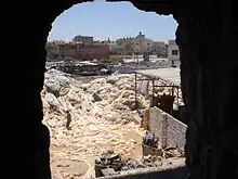 In the last few years Jordan's economic growth has slowed, averaging around 2%. Jordan's total foreign debt in 2011 was $19 billion, representing 60% of its GDP. In 2016, the debt reached $35.1 billion representing 93.4% of its GDP.[21] This substantial increase is attributed to effects of regional instability causing: decrease in tourist activity; decreased foreign investments; increased military expenditure; attacks on Egyptian pipeline supplying the Kingdom with gas; the collapse of trade with Iraq and Syria; expenses from hosting Syrian refugees and accumulated interests from loans.[21] According to the World Bank, Syrian refugees have cost Jordan more than $2.5 billion a year, amounting to 6% of the GDP and 25% of the government's annual revenue.[22] With the presence of Syrian refugees in Jordan, wage growth went considerably down as a result of competition for jobs between refugees and Jordan citizens. The downturn that began in 2011, continued until 2018. The country's top five contributing sectors to GDP, government services, finance, manufacturing, transport, and tourism and hospitality were badly impacted by the Syrian civil war.[23] Foreign aid covers only a small part of these costs, 63% of the total costs are covered by Jordan.[24] An austerity programme was adopted by the government which aims to reduce Jordan's debt-to-GDP ratio to 77% by 2021.[25] The programme succeeded in preventing the debt from rising above 95% in 2018.[26] The yearly growth rate of the economy was 2% from 2016 to 2019, compared to 6.4% from 2000 to 2009.[27]