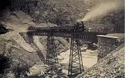 At the end of the 1860s, came a new industrial surge caused by two armed conflicts: the American Civil War and the Paraguayan War. Because of the first, U.S. production of cotton was interrupted by the blockade of the Union forces against the Confederacy. The second resulted in the emission of currency and an increase in import tariffs to cover the costs of war. This resulted in a great stimulus not only for the textile industry, but also for other sector, such as chemicals, cigars, glass, paper, leather, and optical and nautical instruments.[57] During the 1870s, thanks to the decline of the coffee region of the Paraíba Valley and some areas of sugar production, many owners of plantations invested not only in the cotton textile industry, but also in other manufacturing sectors. Deployment of a railway network throughout the national territory also stimulated the emergence of new industrial activities, mainly in São Paulo.[65] Industry also experienced a major impetus in this period. From the 1870s onward, the great expansion of industrialization became a constant in Brazil.[66] In 1866, there were 9 textile factories with 795 workers.[67] In 1881, there were 46 textile factories through the country: 12 in Bahia; 11 in Rio de Janeiro; 9 in São Paulo; 9 in Minas Gerais; and 5 in other provinces.[68] The number of establishments diminished a little by 1885 to 42 textile factories with 3,172 workers. However, it did not harm the overall growth in the sector up to 1889.[67]