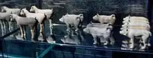 Other common goods included: consumables (liquor, pickles and sauces, sheep and pigs, grain, yeast for fermentation, bean relish, dried fish and abalone, dates, chestnuts, fruits and vegetables), raw materials (cattle hide, boat timber, bamboo poles, dyes, horns, cinnabar, raw lacquer, jade, amber), clothing and clothing materials (silk fabrics, fine and coarse cloth, sable and foxskin garments, felt and mats, deerskin slippers), eating utensils (bronze utensils and chopsticks, silver, wood and iron vessels, ceramic wares), art objects (lacquerware, ceramics), elegant coffins (made of catalpa, locust, juniper, and lacquered wood), vehicles such as light two-wheeled carts and heavy oxcarts, and horses.[106]