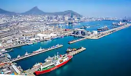 In 2010, the Western Cape imported a total of R104.9 billion[27] worth of goods and commodities and exported R50.4 billion.[28] The discrepancy between imports and exports and the dominance of oil producing countries as the top trade partners can be explained by the large amount of petroleum and petroleum products that are imported into the province to be processed and refined at the Chevron Oil Refinery in Cape Town. Cape Town is a major entry point for oil and gas imports into South Africa. Adjusted for petroleum imports, the Western Cape imported R47.6 billion worth of goods and commodities in 2010 and had a trade surplus of R2.78 billion. A total of 1.2 million tons of cargo went through the Port of Cape Town in 2016.[3]